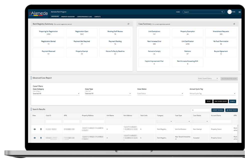 Prior to December 2019, the city primarily relied on spreadsheets – manually tracking and reporting to draw insights and ensure compliance with regulations such as maximum allowable rent (MAR). Given the volume of data, these were cumbersome processes for the Alameda Housing Authority.
