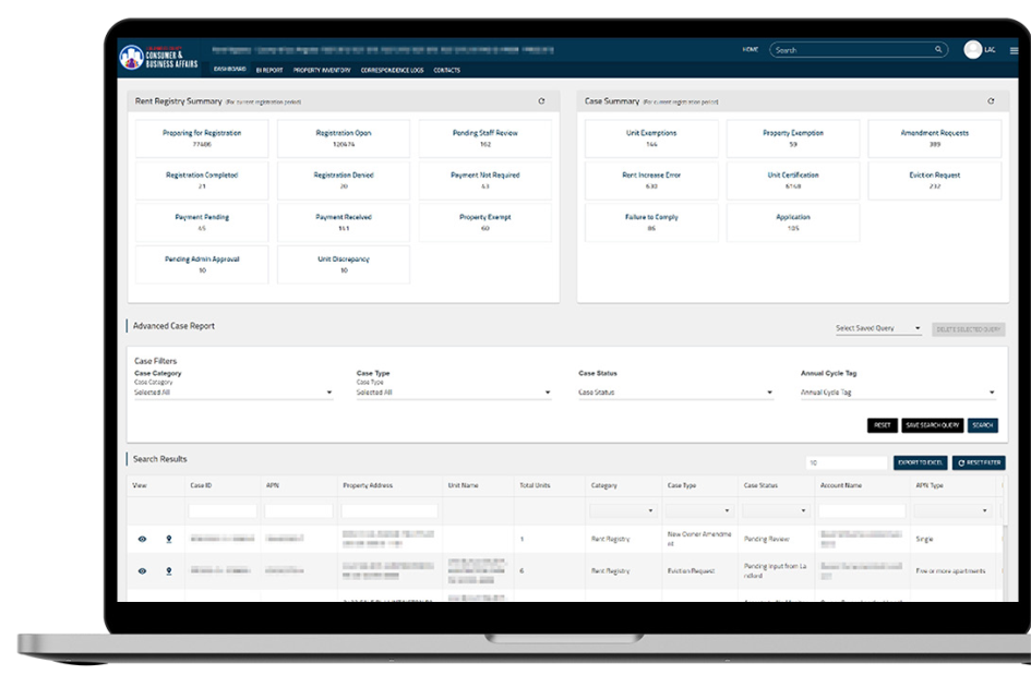 - Simplified tracking and processing – Los Angeles County can easily collect and review accurate data on properties, rent amounts, fees, and changes in tenancies or ownership.